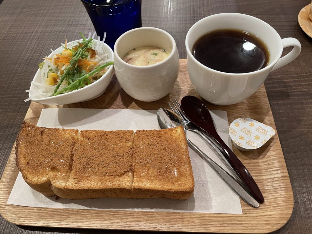 『カフェ ソルテ』で、シナモントースト&サラダ&茶碗蒸しのモーニング♪