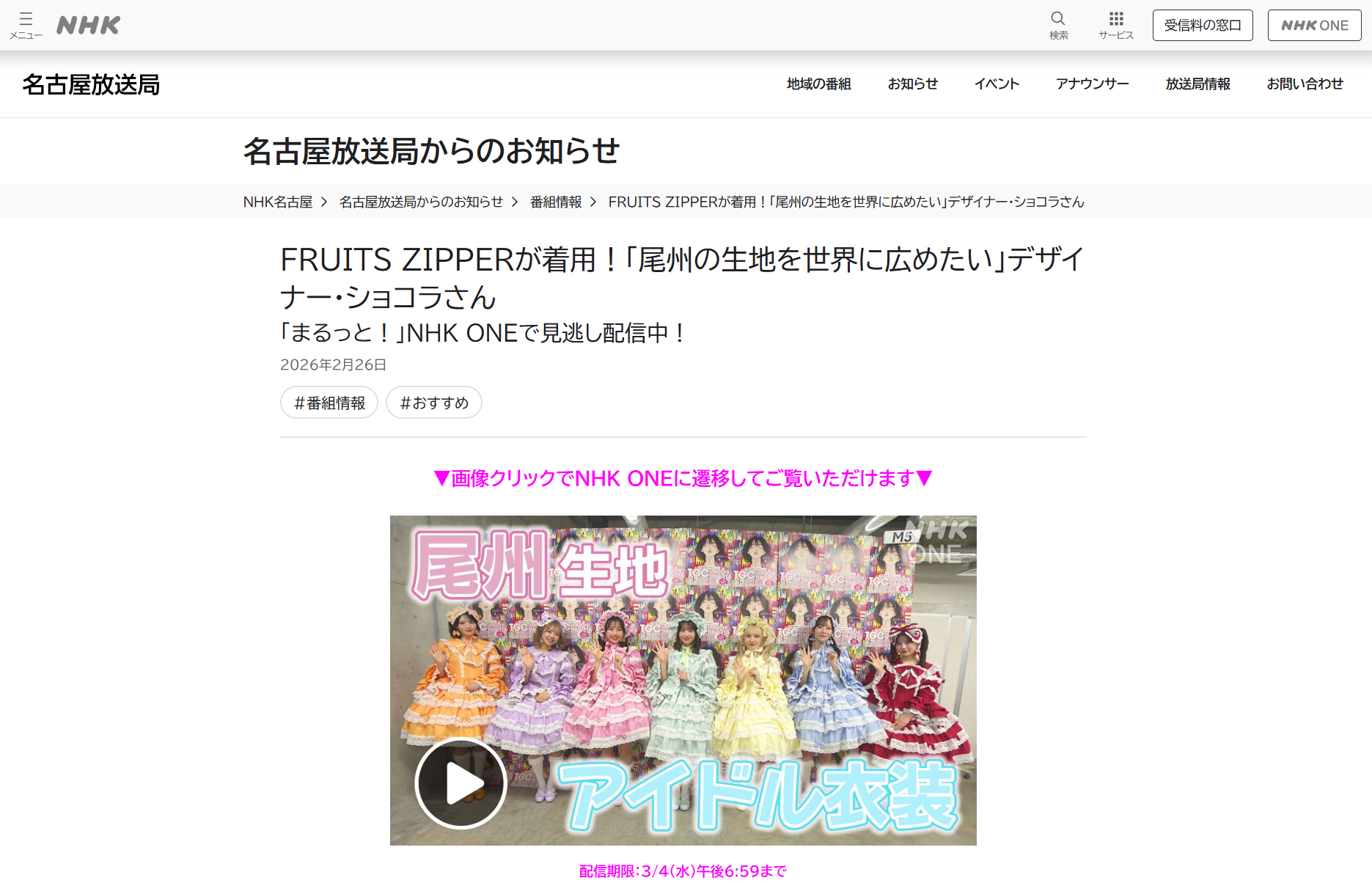 — NHK名古屋 (@nhk_chubu) February 26, 2026