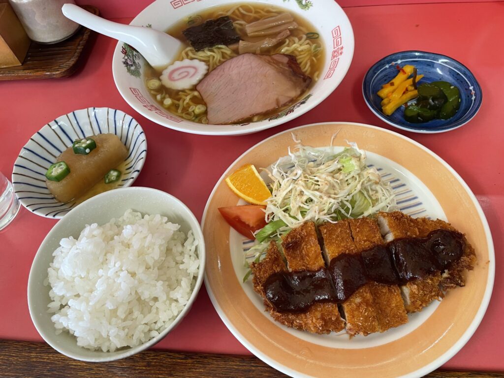 『中華食堂 とみくら』で、みそカツに中華そば、小鉢、ライス、つけもので900円!のAランチ!