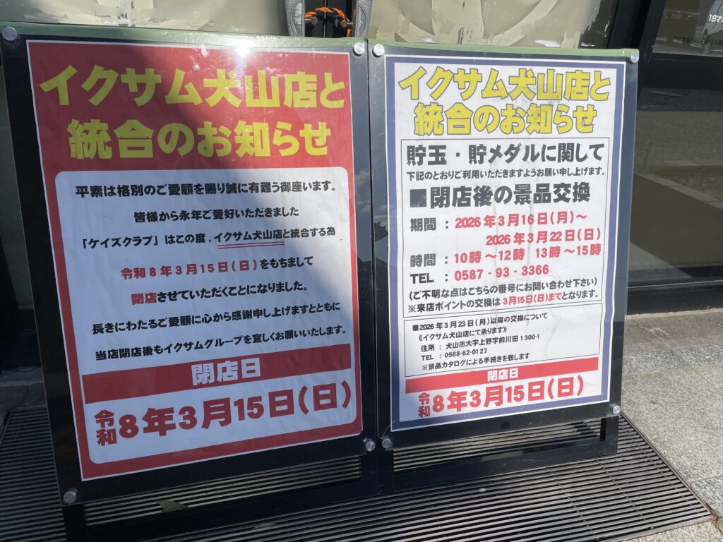 閉店のお知らせ(イクサム犬山店と統合のお知らせ)