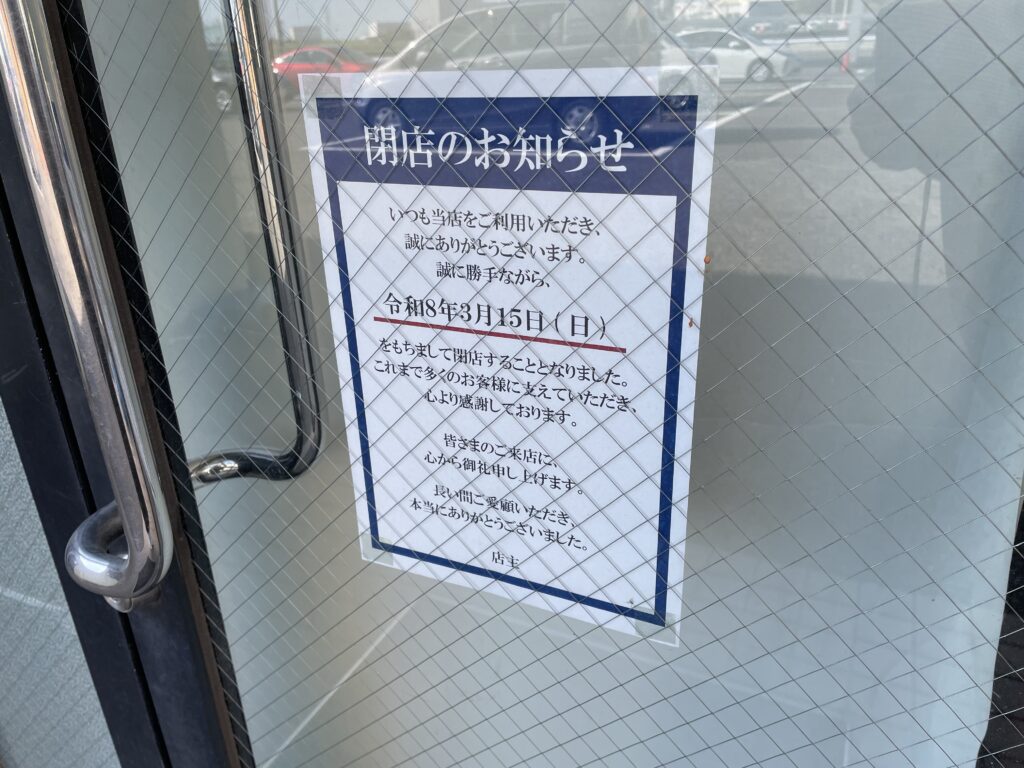 【大口町】ケイズクラブ、メンメンが、3/15で閉店していたみたい!