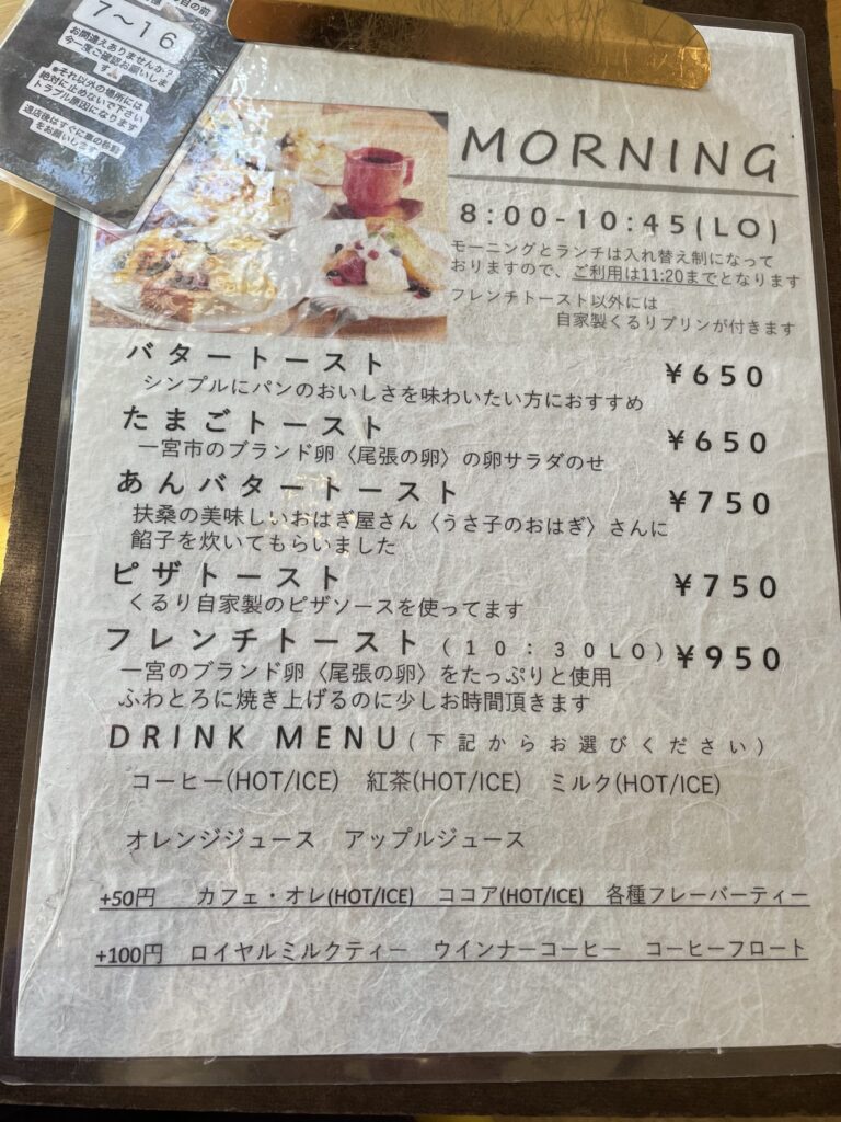 MORNING メニュー