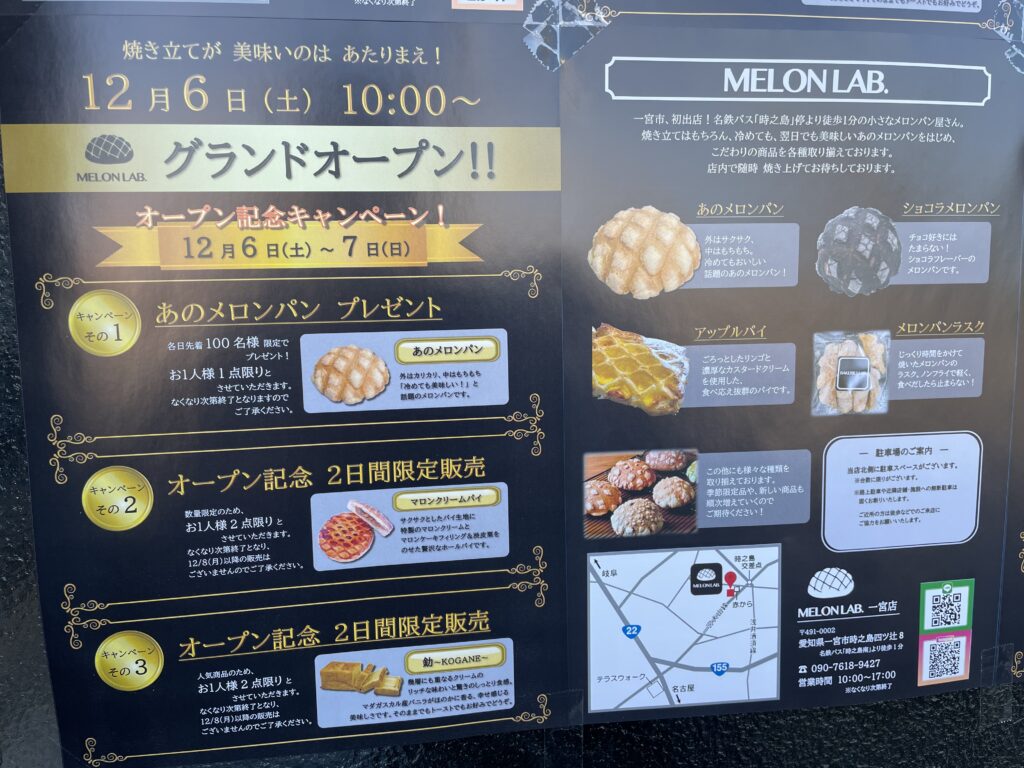 12/6(土) MELON LAB.一宮店 グランドオープン!! - BAKERIES LAB.(ベーカリーズラボ)