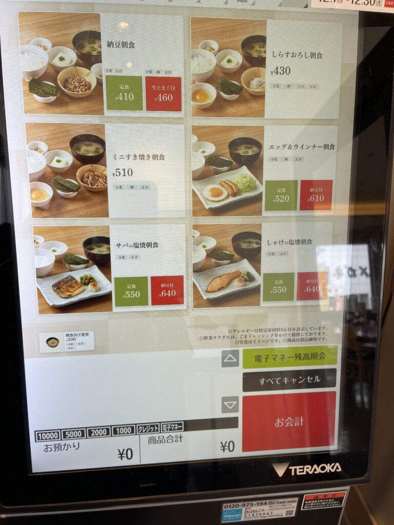 タッチパネル 朝食メニュー