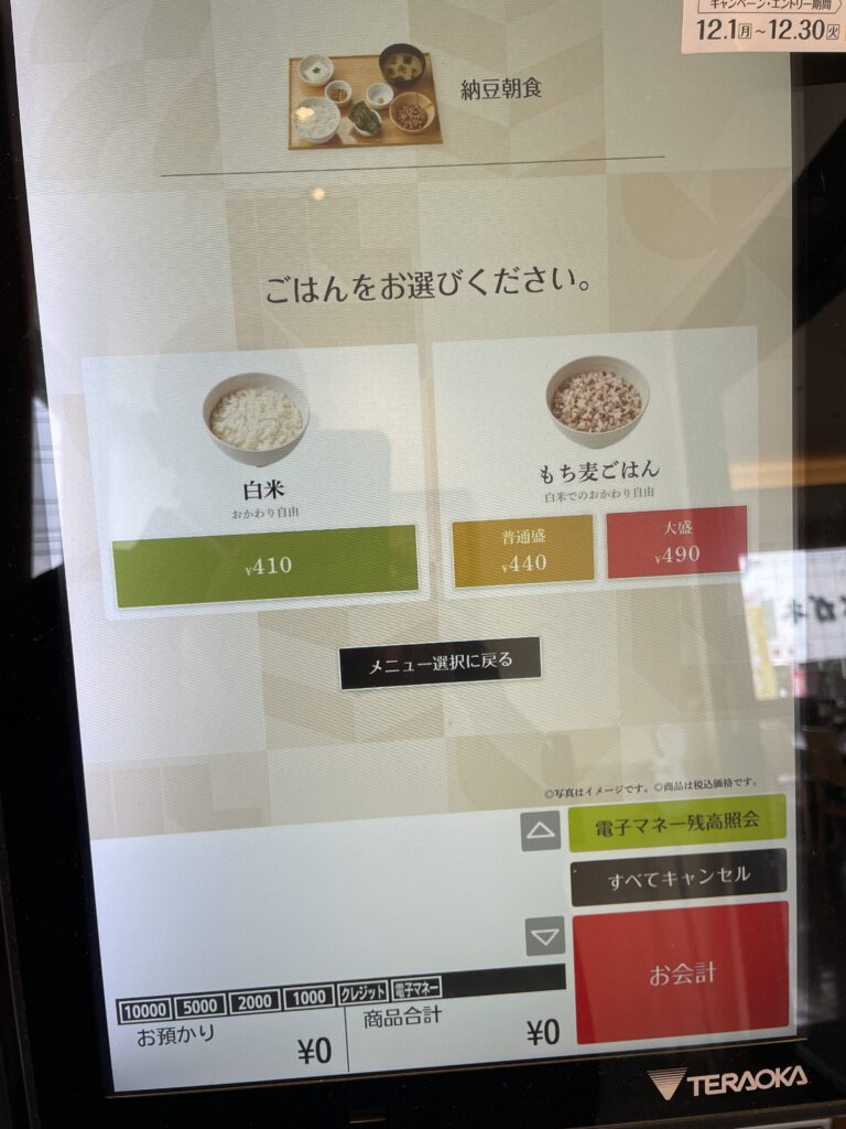 納豆朝食410円を選択!