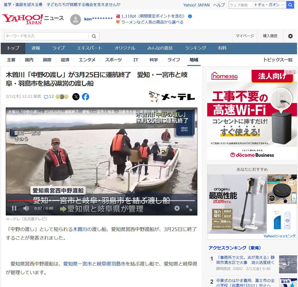 木曽川「中野の渡し」が3月25日に運航終了 愛知・一宮市と岐阜・羽島市を結ぶ県営の渡し船 - Locipo(ロキポ) 無料テレビ動画・見逃しネット配信サービス