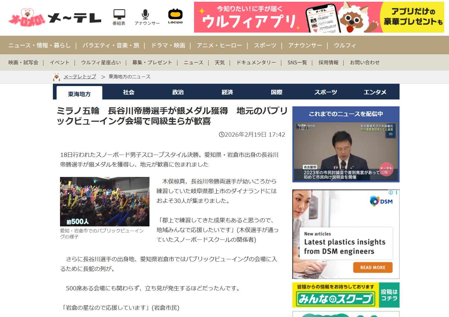 地元で同級生らが歓喜♪!メーテレニュースなど!