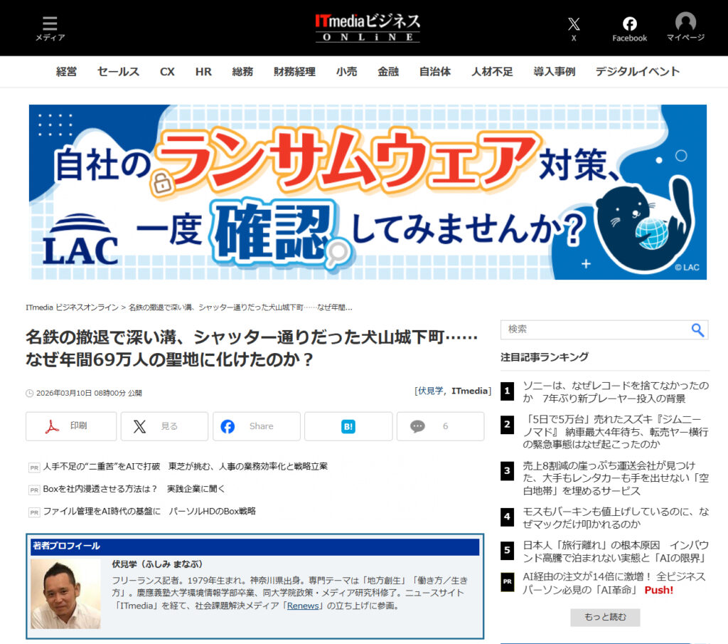 名鉄の撤退で深い溝、シャッター通りだった犬山城下町……なぜ年間69万人の聖地に化けたのか?(前編)