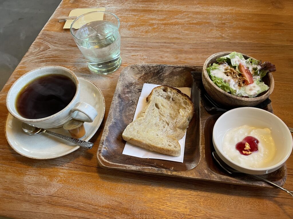 『Cafe みかん花』で、トースト、サラダ、ヨーグルト付きのモーニング♪