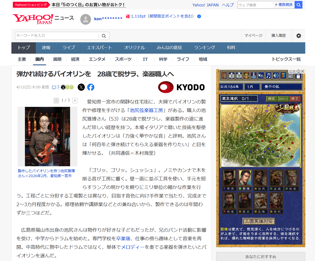 夫婦でバイオリンの製作や修理!「池尻弦楽器工房」が、共同通信のニュースになってます!4/28に新店舗移転するんだって!