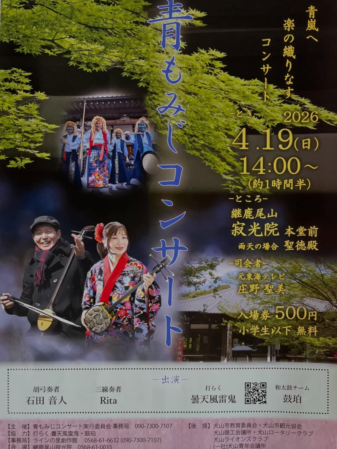 【犬山市】胡弓と三線♪太鼓!「青もみじコンサート」が、